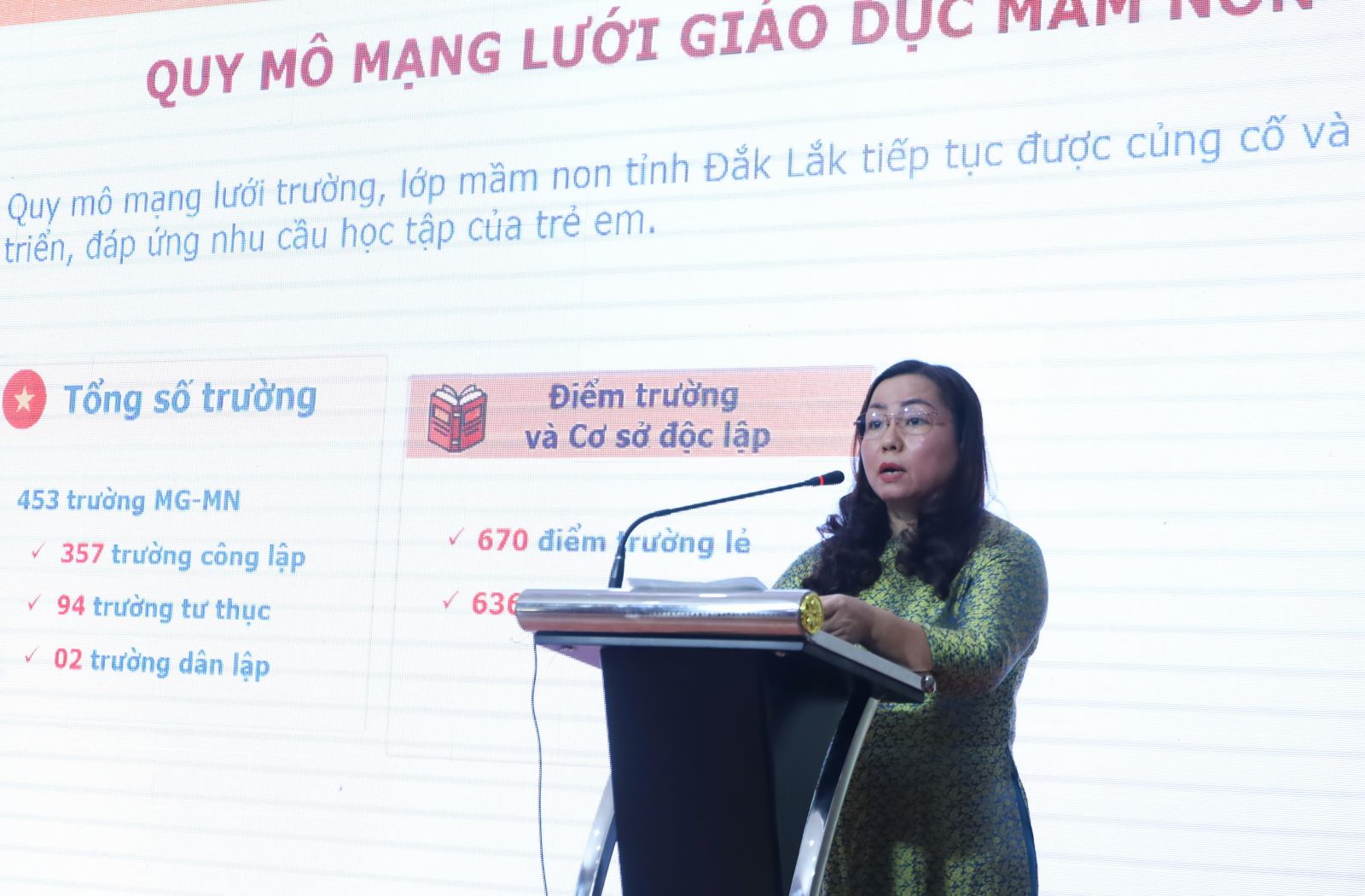 Năm học vừa qua, toàn ngành Giáo dục và Đào tạo nói chung và Giáo dục Mầm non tỉnh Đắk Lắk nói riêng đã nỗ lực vượt qua nhiều khó khăn, thách thức, đạt được nhiều kết quả đáng khích lệ. Quy mô mạng lưới trường, lớp tiếp tục được củng cố, phát triển; 100% trẻ ra lớp được học 2 buổi/ngày, gần 94% trẻ được ăn bán trú tại trường; công tác chăm sóc, nuôi dưỡng bảo đảm an toàn, chất lượng.